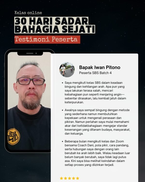 Kelas 30 Hari Sadar Bahagia Sejati Hadir Untuk Membantu Anda :